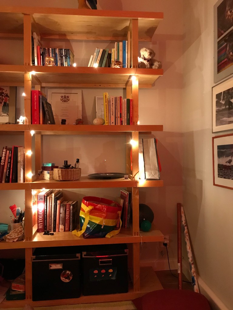 - Create a cosy place, which will be inviting and generate calm. Example: I like fairy light so made this simple decoration of otherwise boring corner of my room. (see photo below)