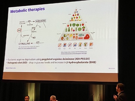 V této konkrétní studii (níže) je zaměřeno na omezení argininu pro podtyp glioblastomu multiforme, který závisí na argininu pro růst a proliferaci kvůli epigenetické dysregulaci arginosukcinát syntetázy (ASS), která také mimochodem reaguje na léčivo chlorochin (jako synergická léčba).