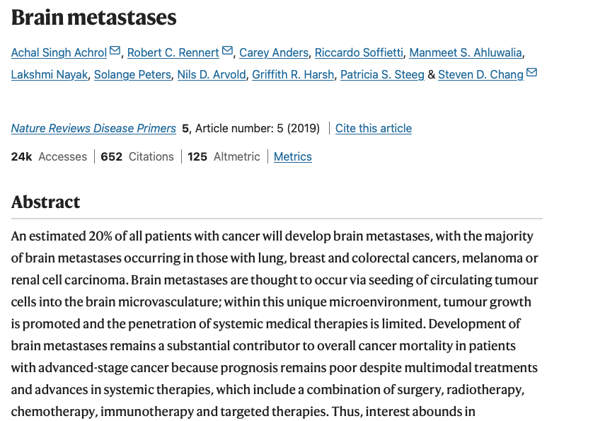 I emphasized that while brain tumors aren’t among the top five cancers, over 20% of all cancers metastasize to the brain.